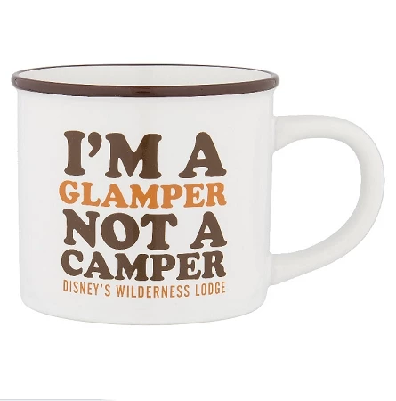 This Coffee Cup features the words I’m a Glamper Not a Camper.
